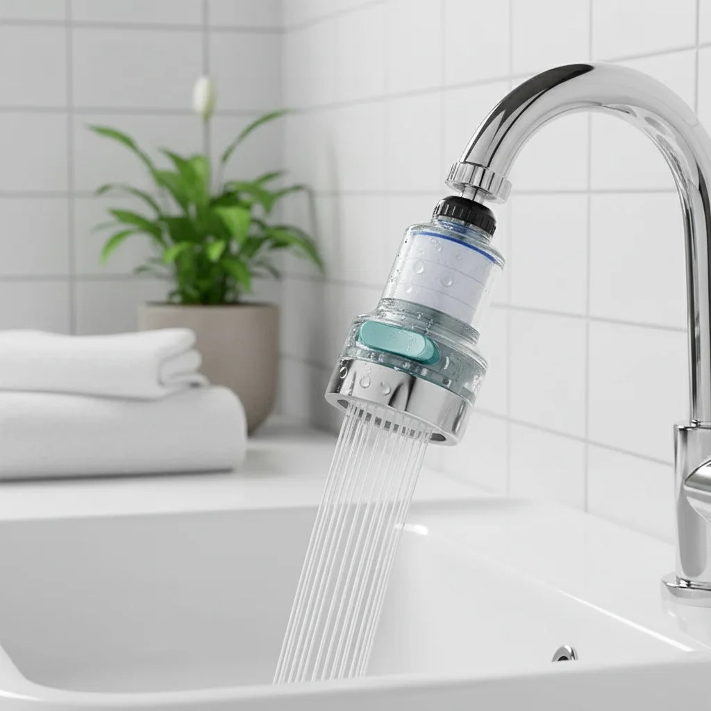 L’Eau Pure, Instantanément.Filtrez impuretés, chlore et résidus en quelques secondes, directement au robinet.